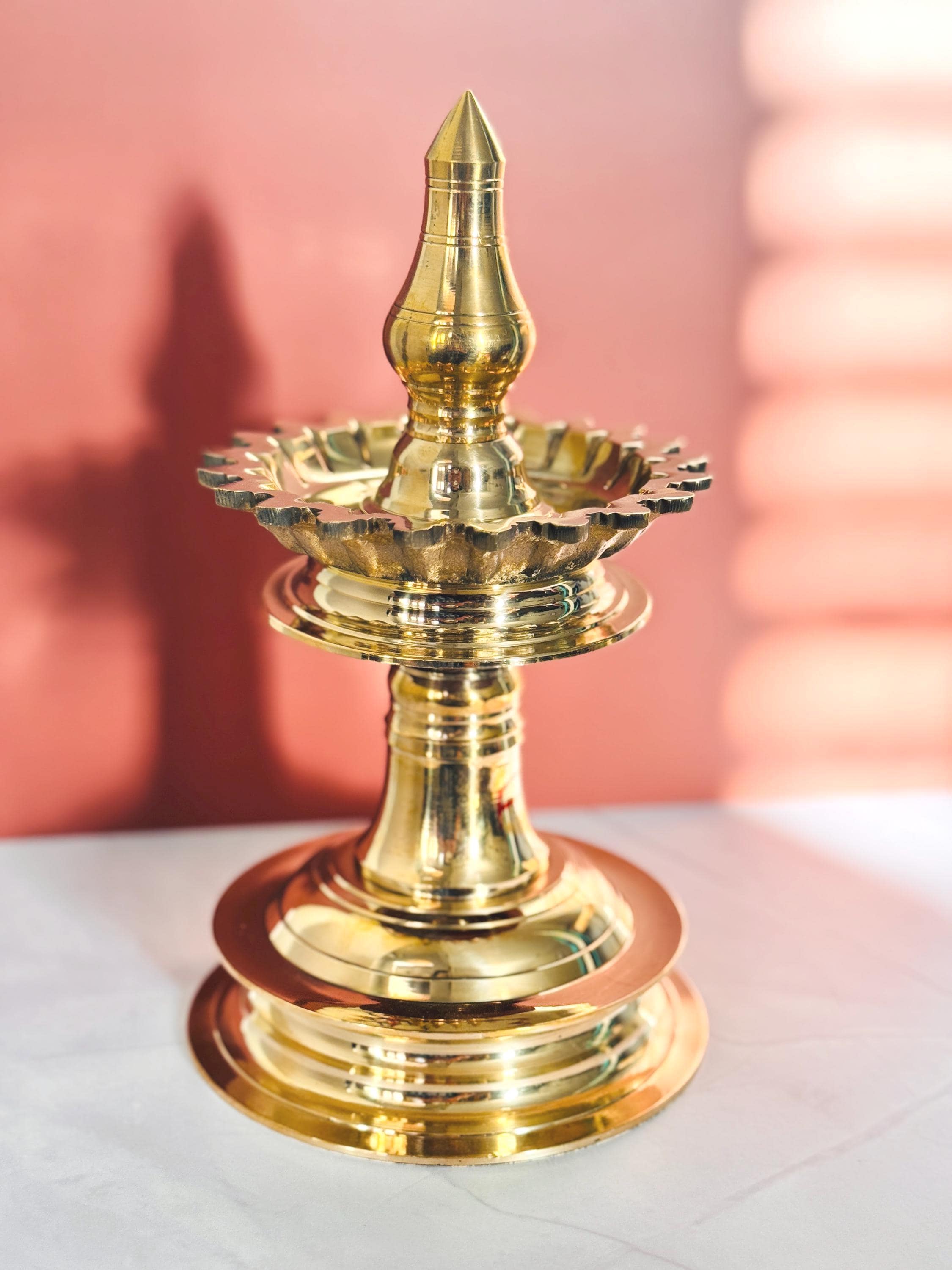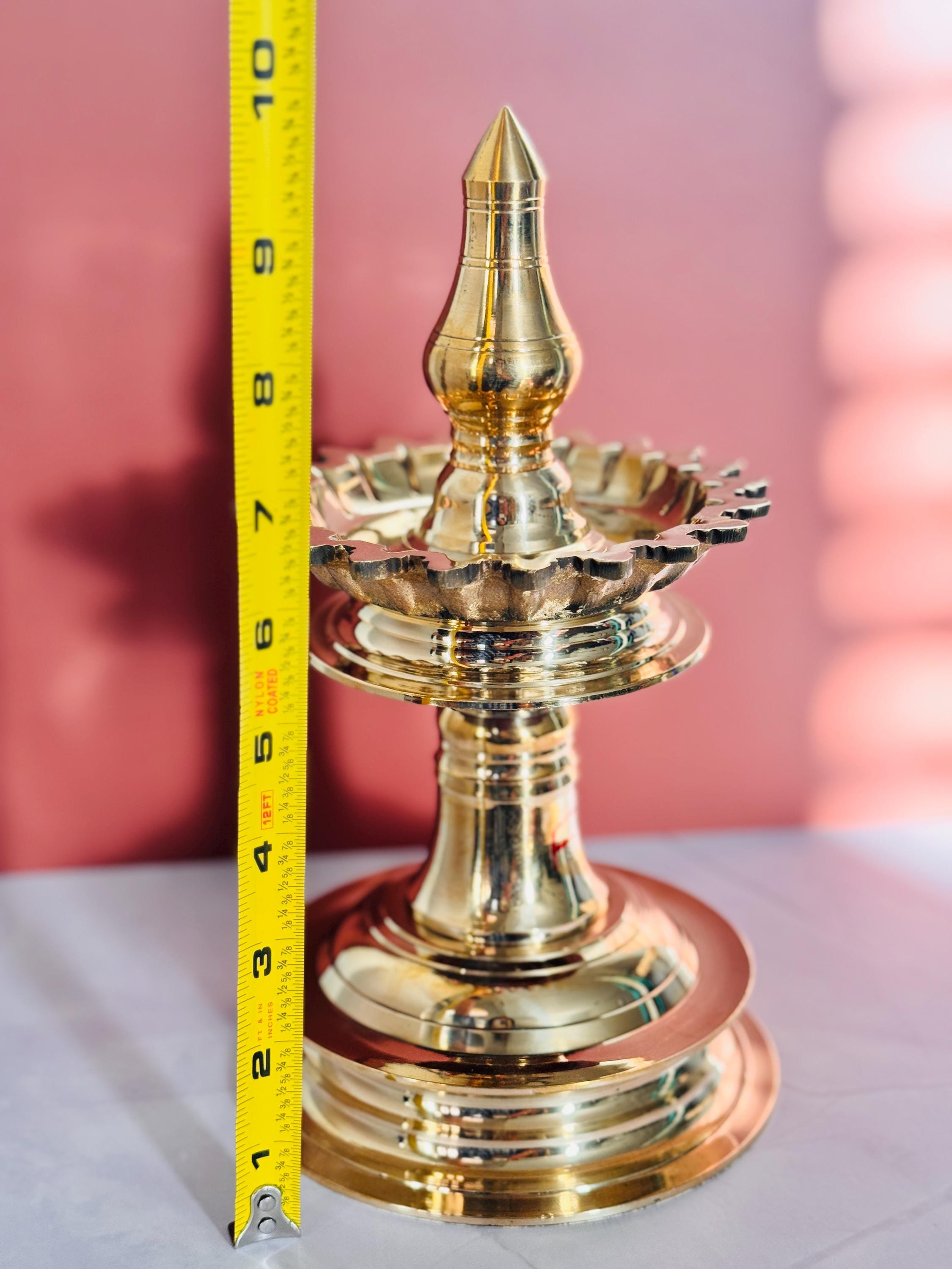 The Kerala Brass Bhadradeepam Vilakku (Lamp) is a handcrafted temple-style oil lamp that embodies purity and devotion. Made from premium brass, it’s perfect for pooja rooms, temples, and festive rituals, spreading divine light and positivity. Add to your pooja room decor with this handcrafted arts piece It will give an elegant look to your home temple puja room decor.