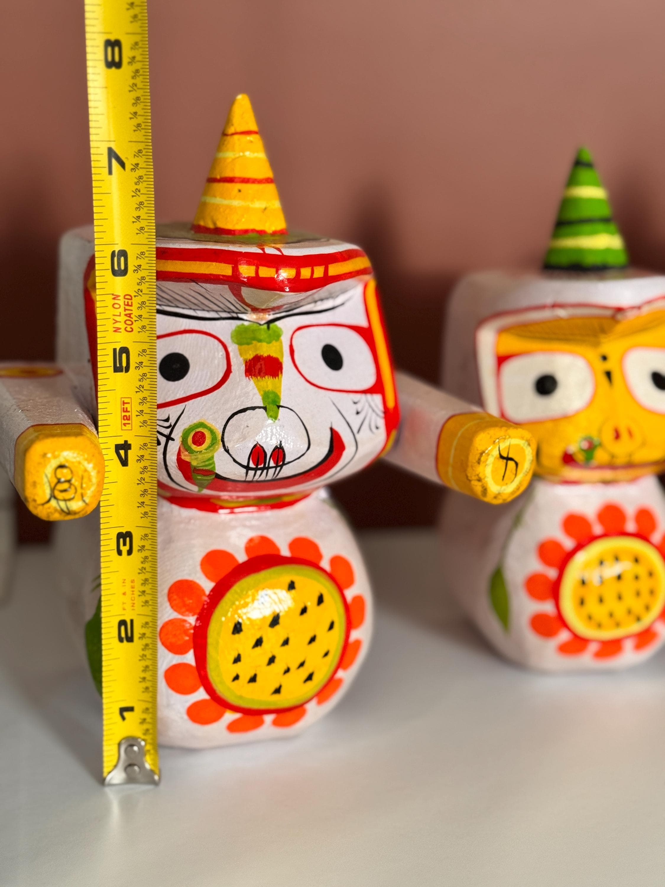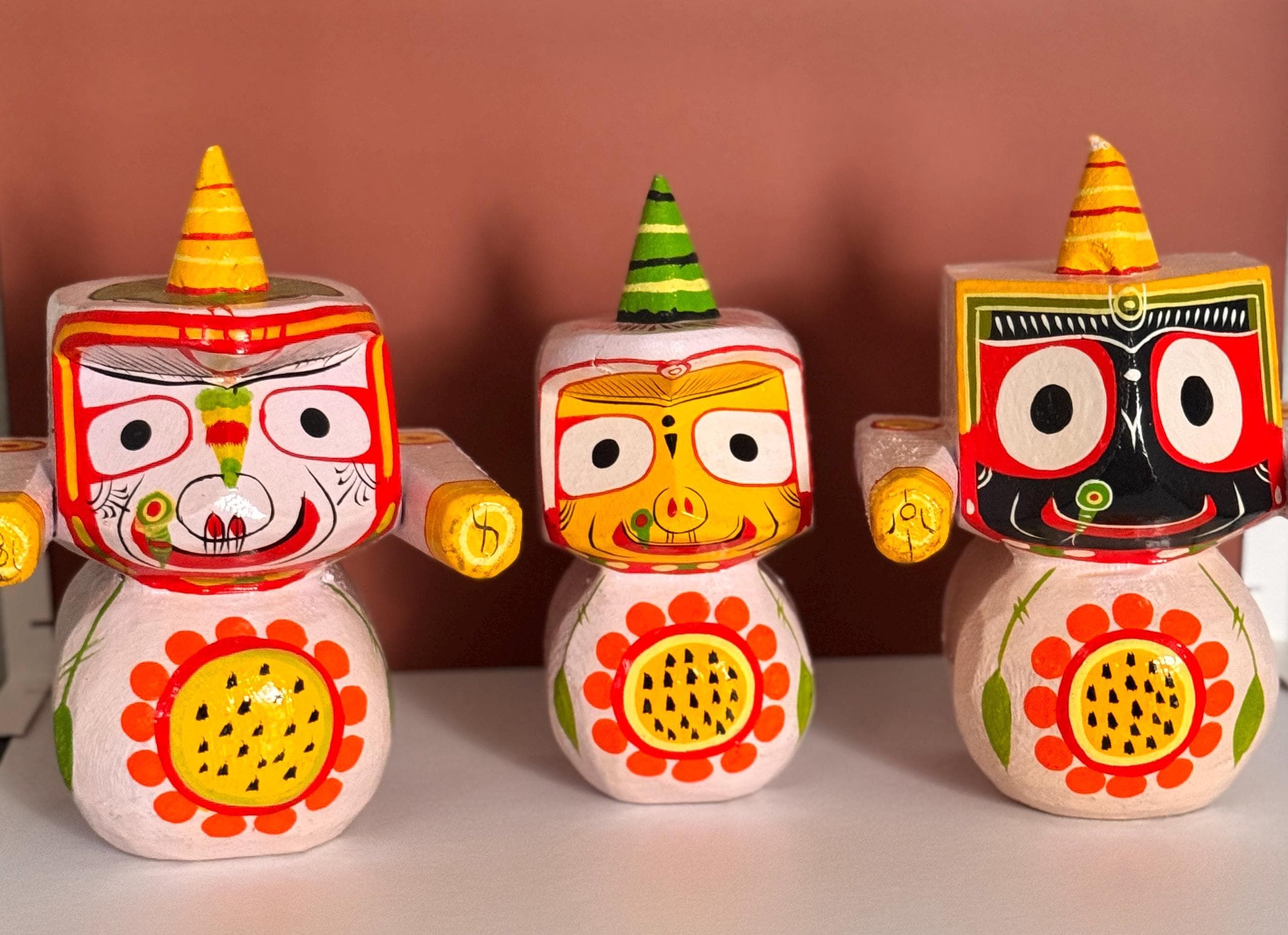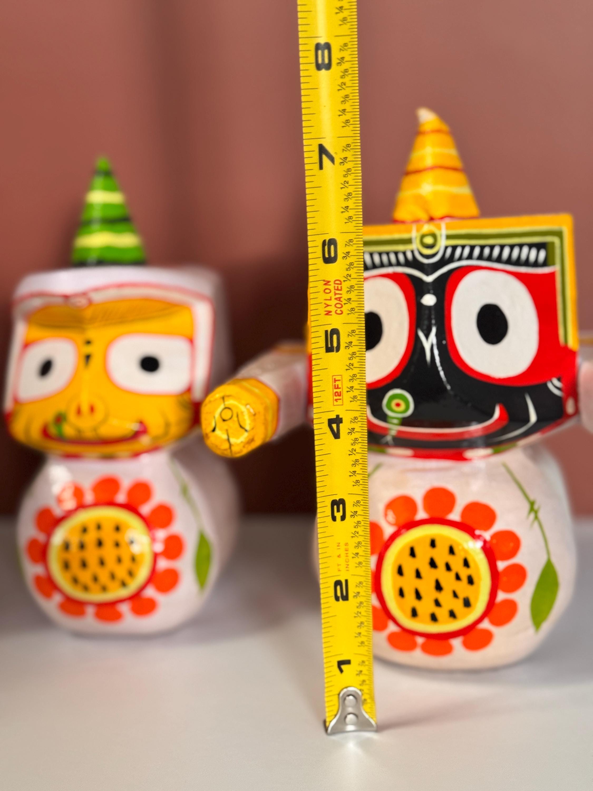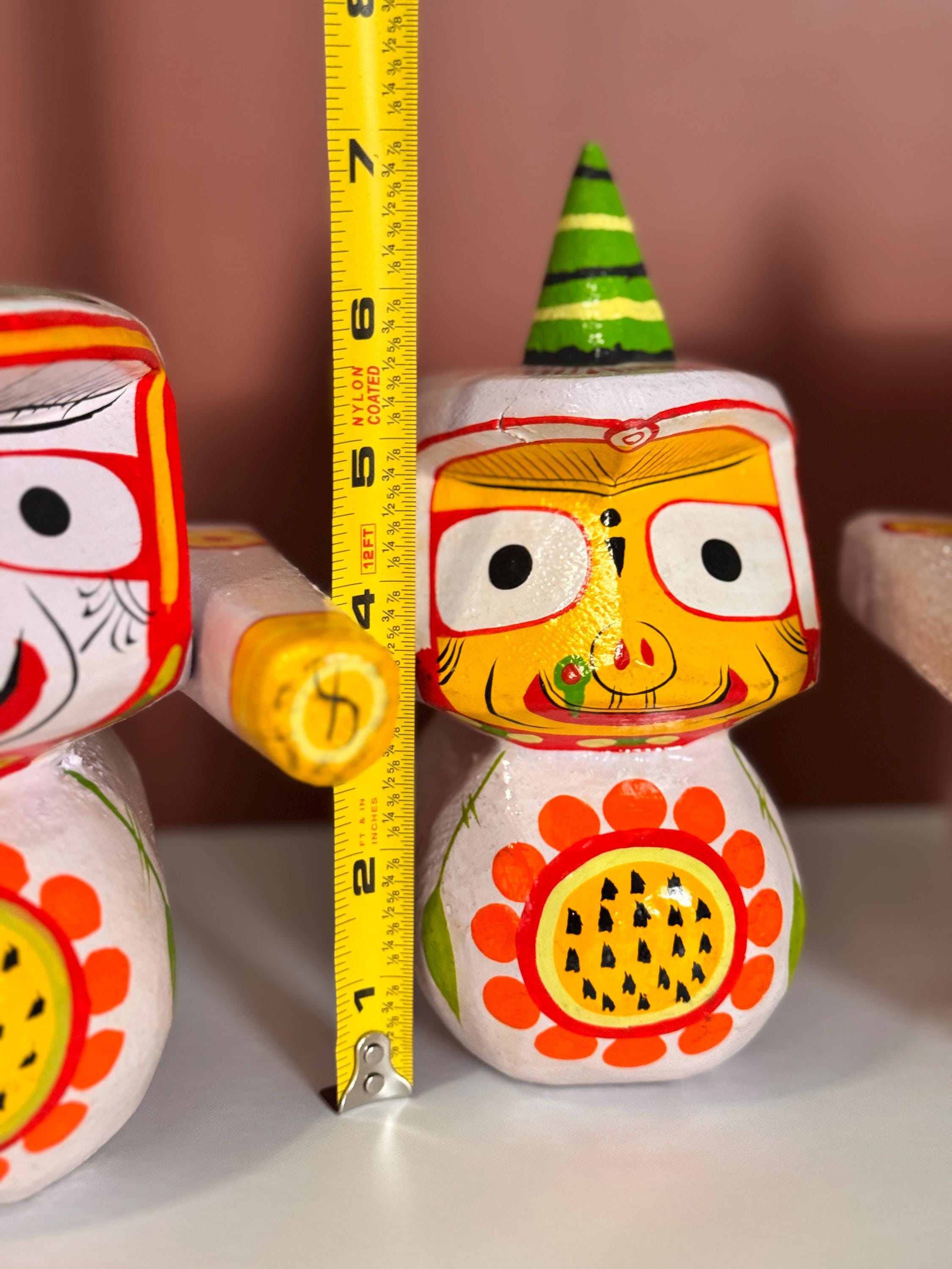 Experience the divine presence of Lord Jagannath, Balabhadra, and Subhadra with this exquisite 7-inch idol set, handcrafted from wood. Meticulously sculpted to capture the essence of the Jagannath Trinity. A meaningful addition to any space, representing the divine presence of the Jagannath Trinity.