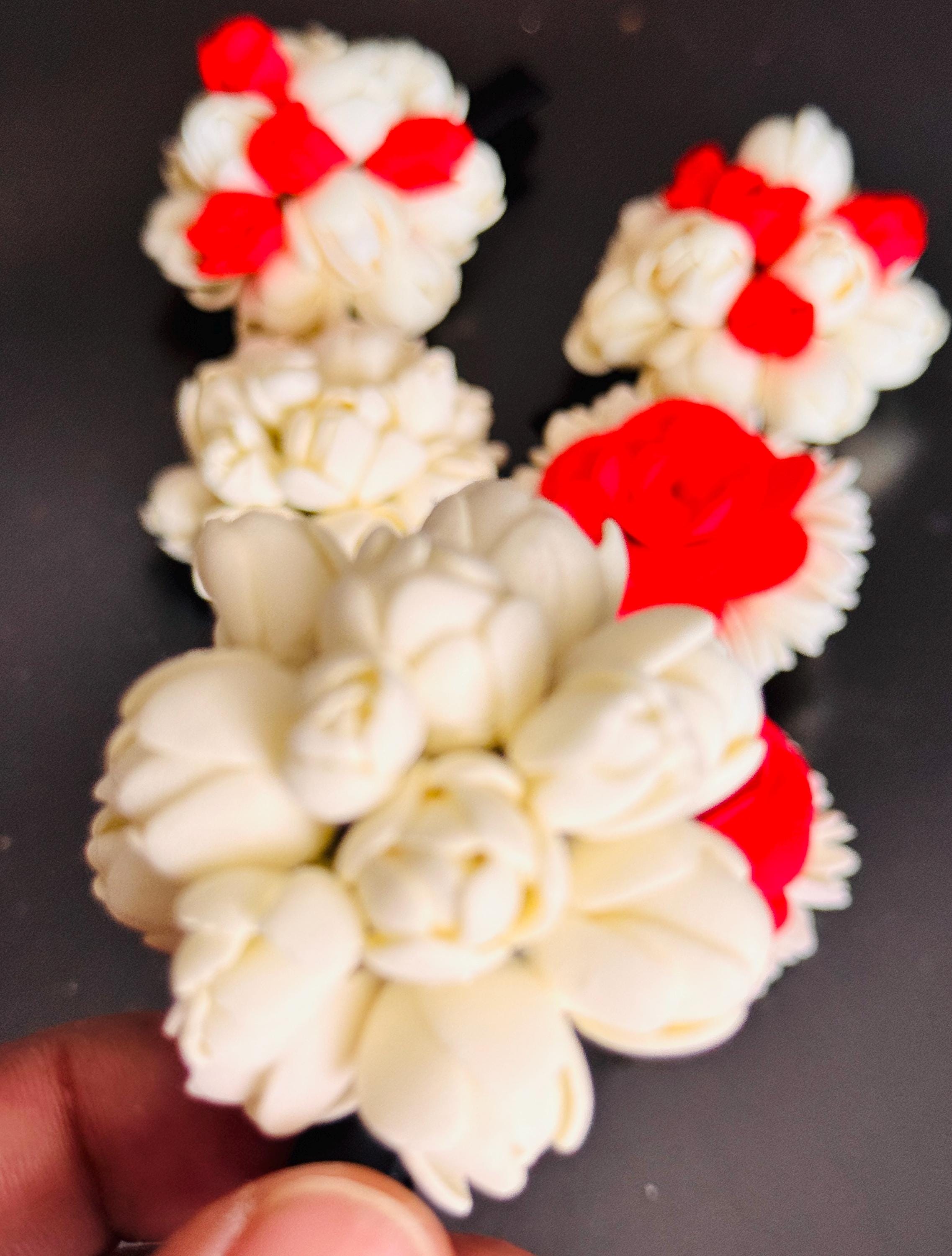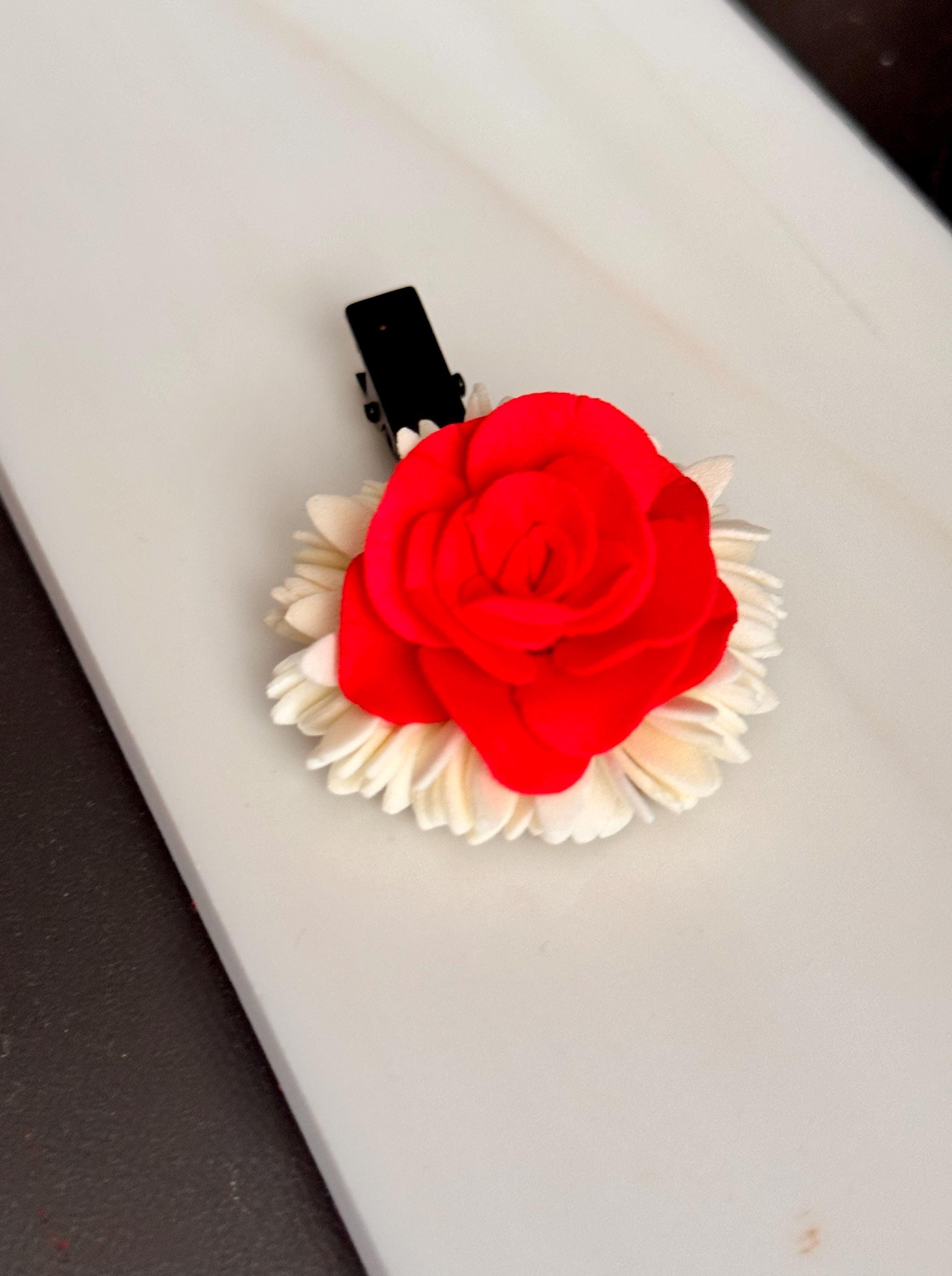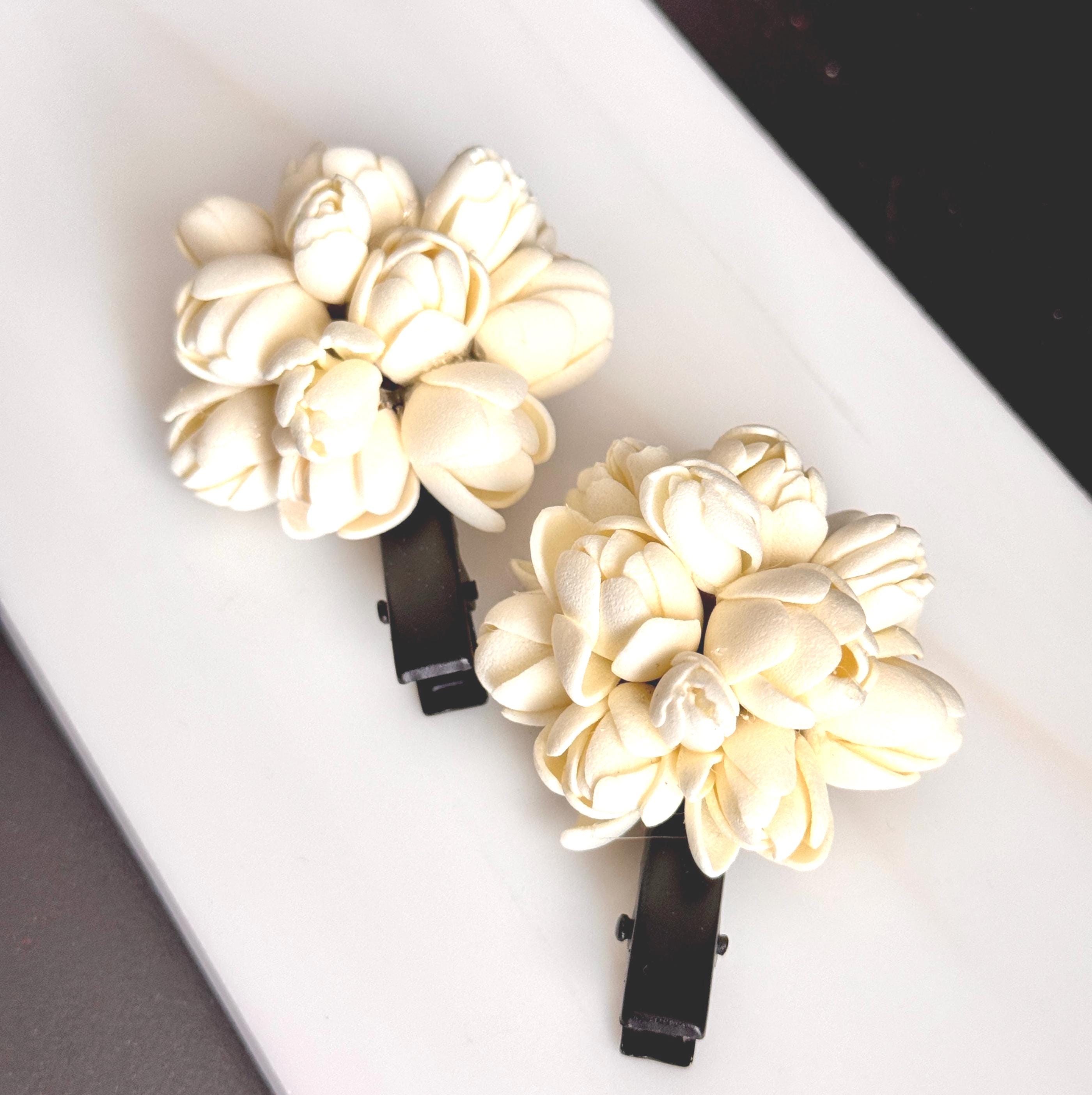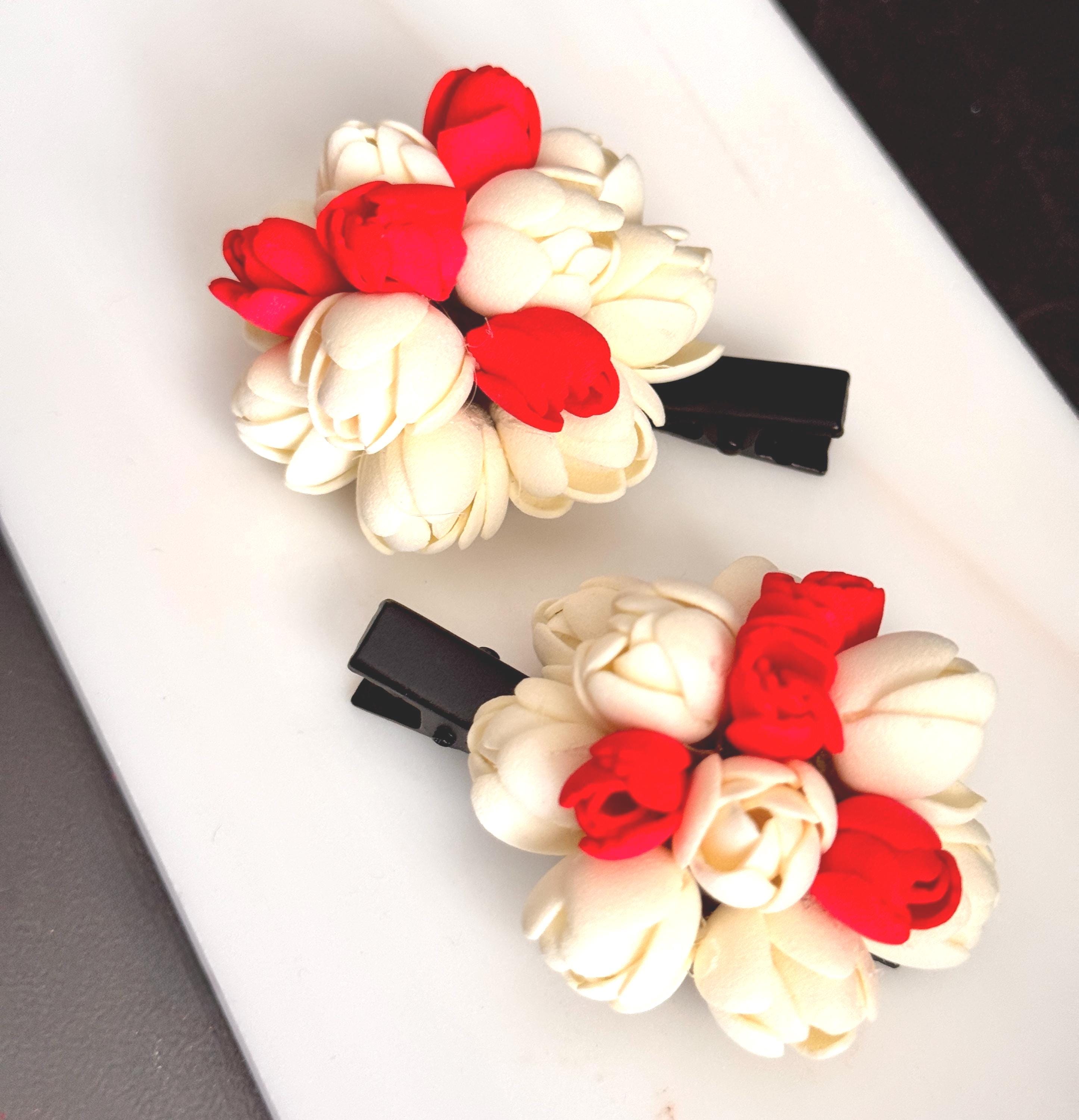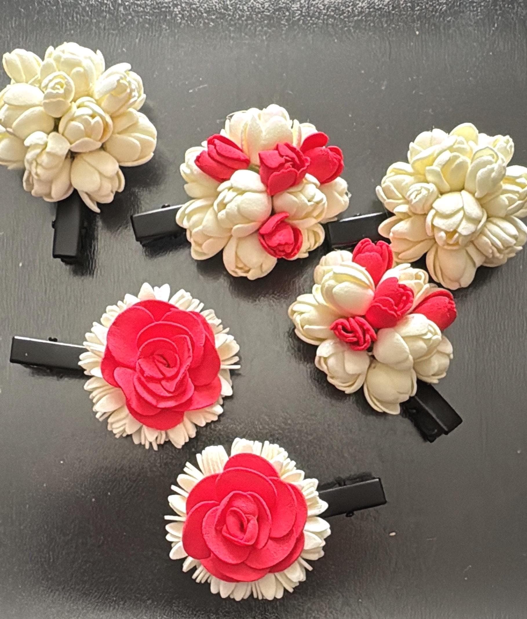 A beautiful floral arrangement woven into a hair clip/ alligator clip/ hair tie model. Simple for everyday use. A simple accessory that can instantly bring charm to your hair braids, pony tails etc.
