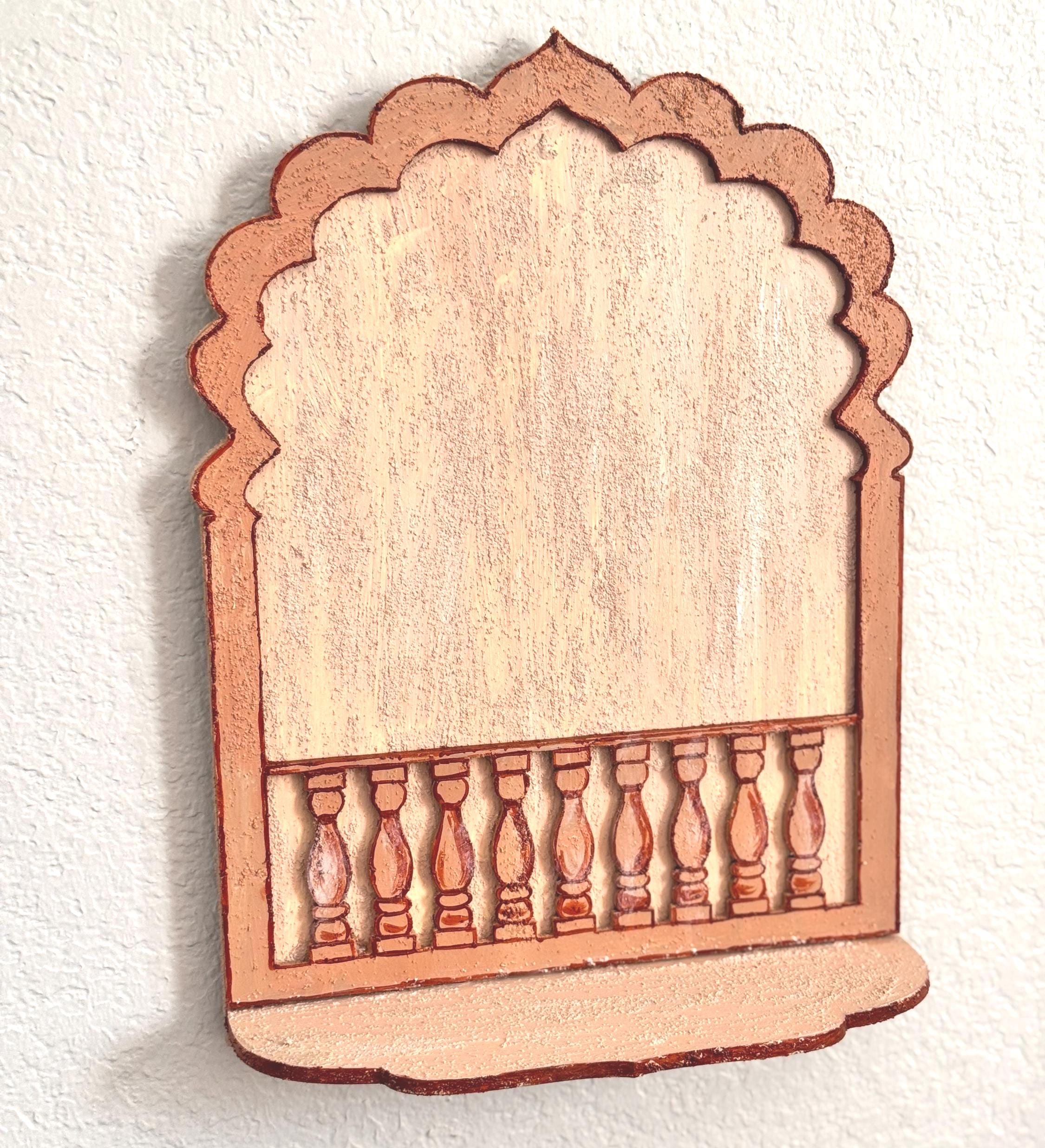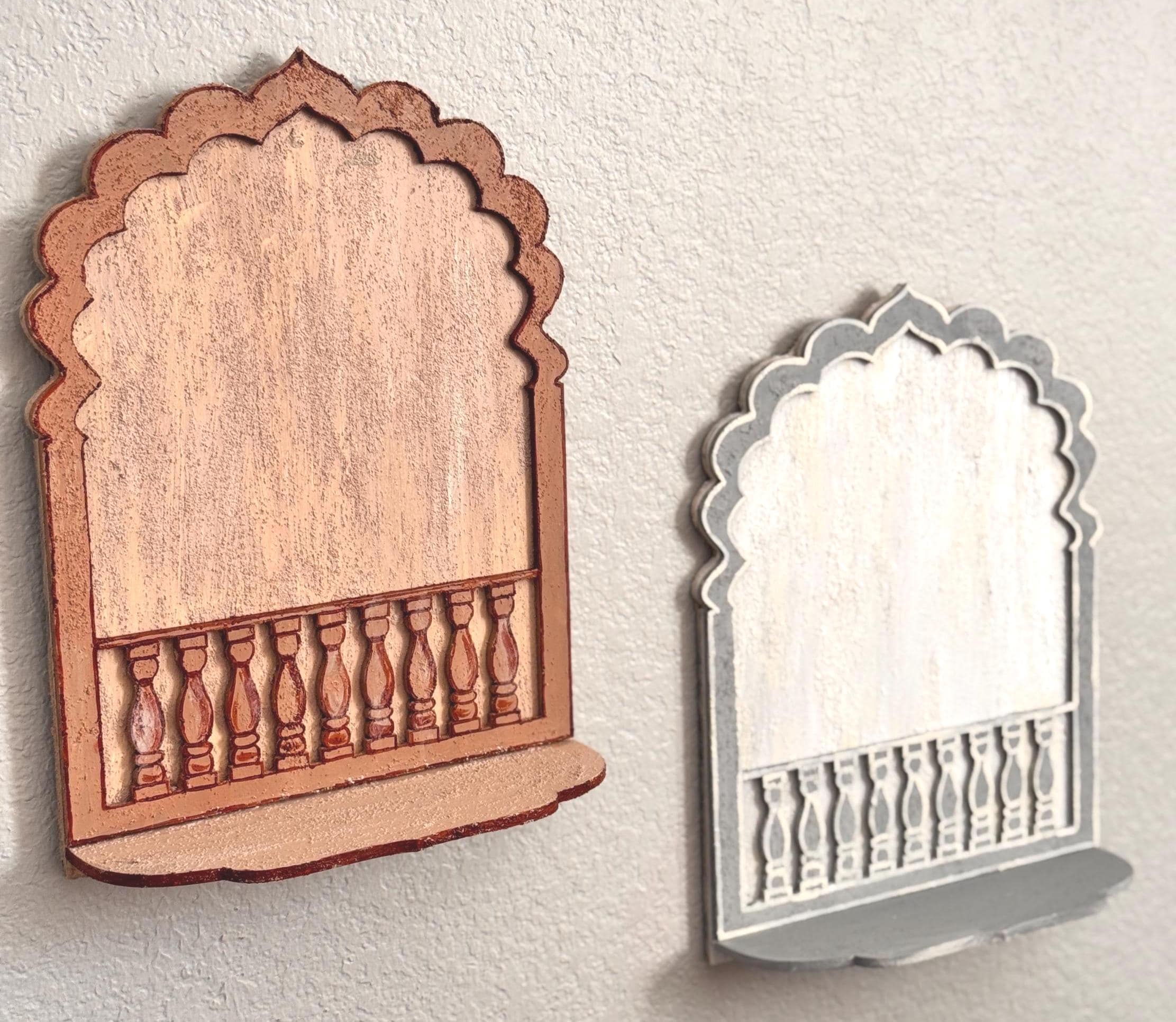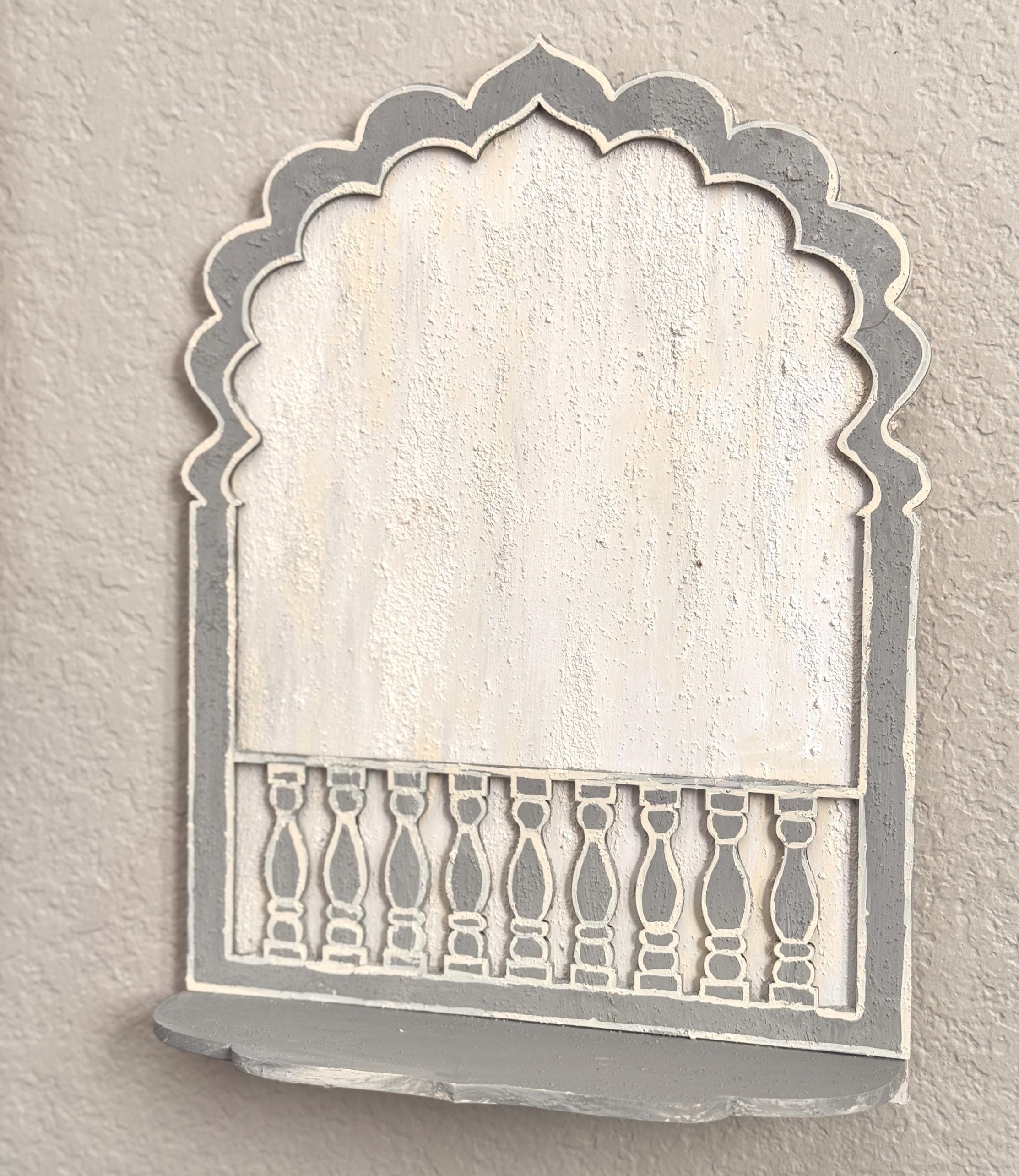 One of a kind pattern which can be used for T light candles (battery operated), light weight small idols/ lamps/figurines/collectibles. The lower panel features a painted balustrade-style accent, adding depth and visual intrigue.