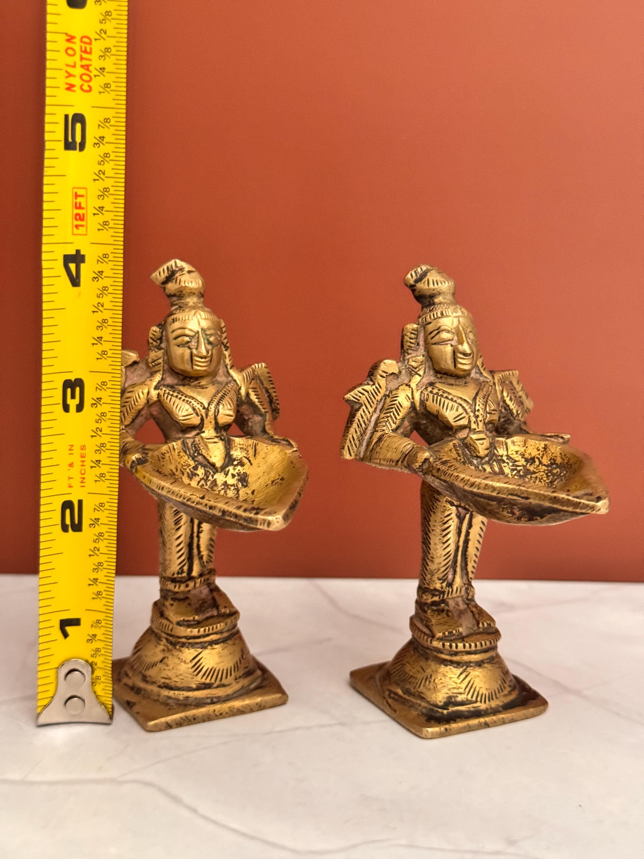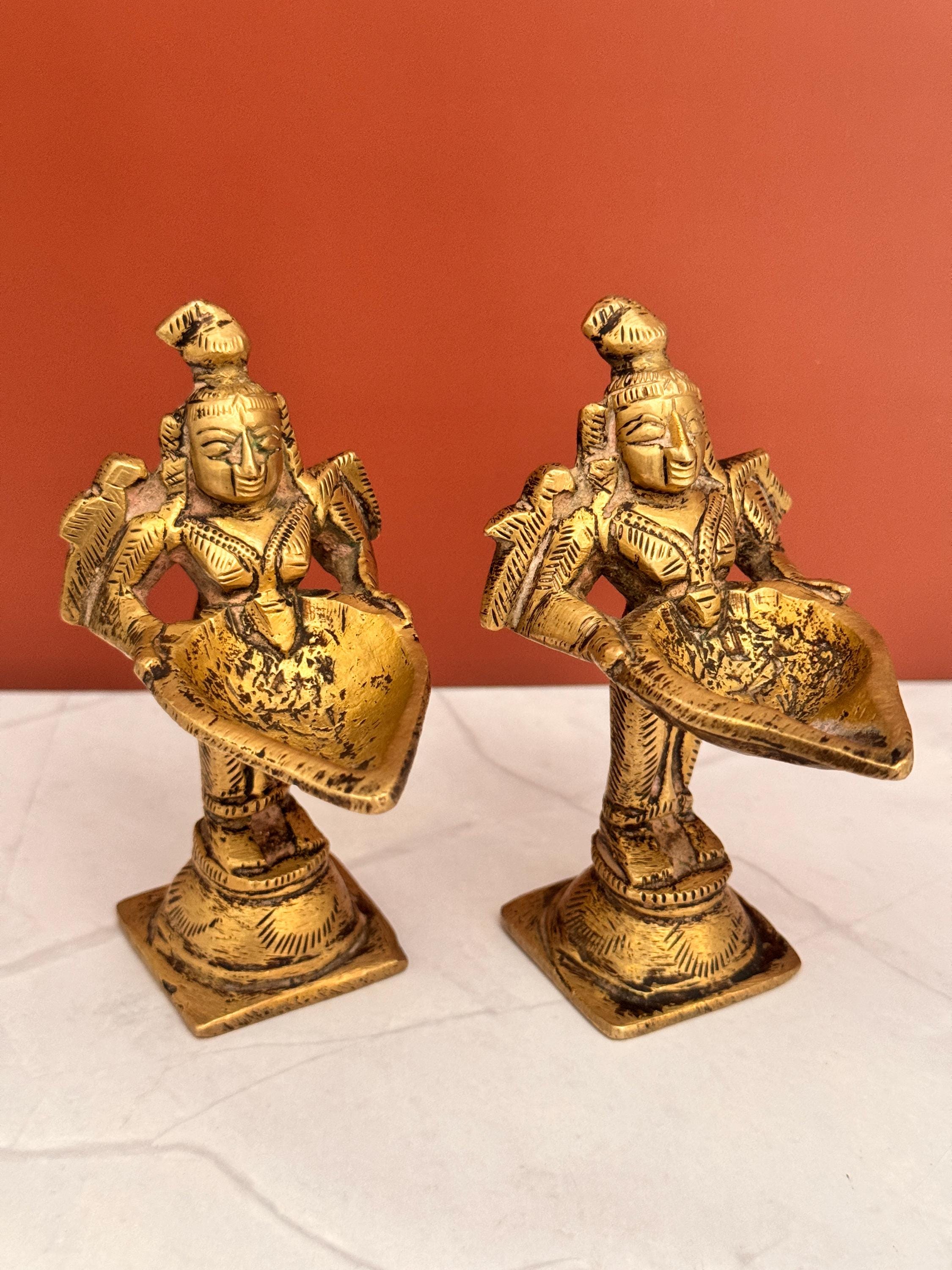 Vintage brass pair of Paavai Vilakku / Deepalakshmi