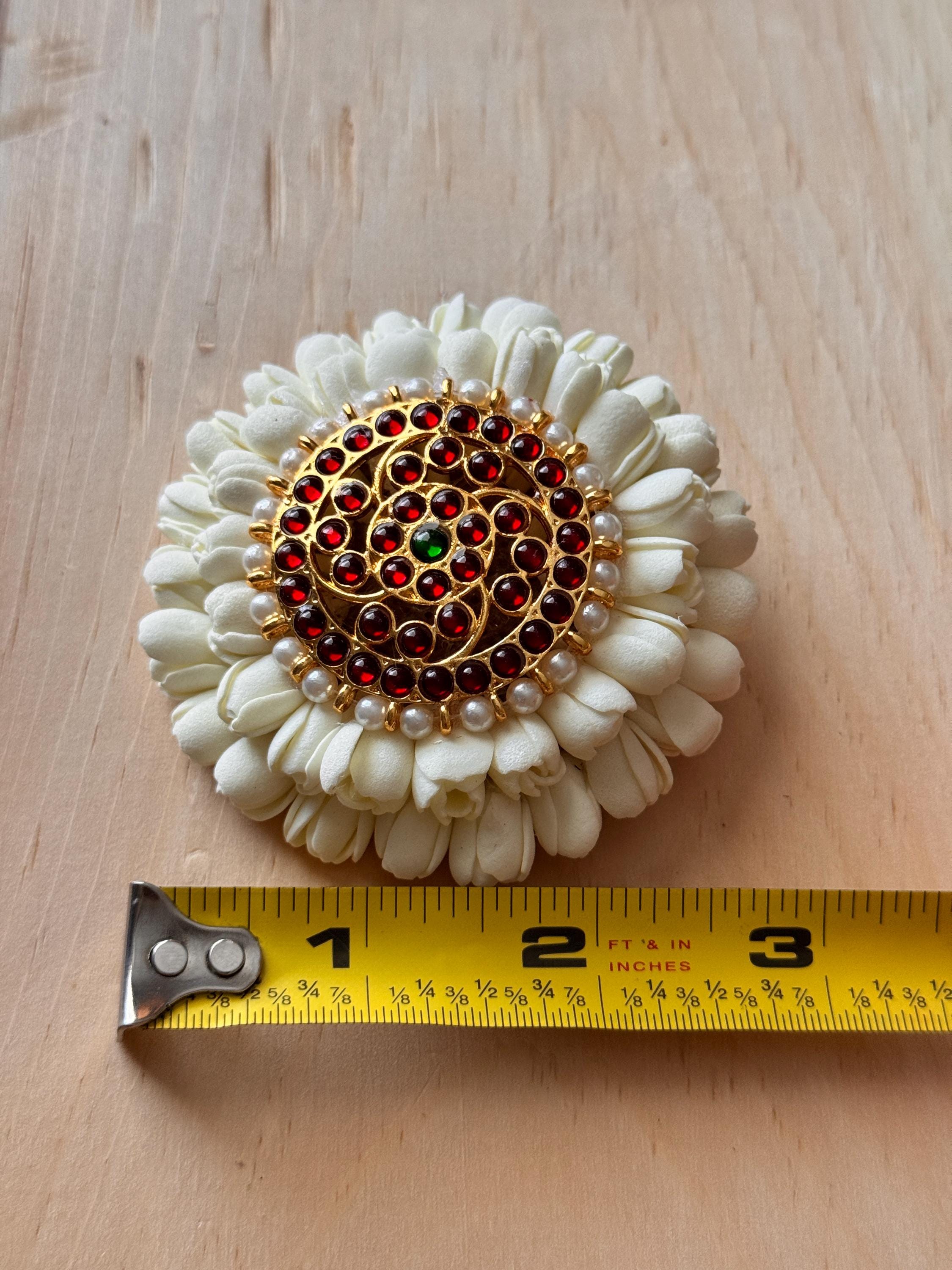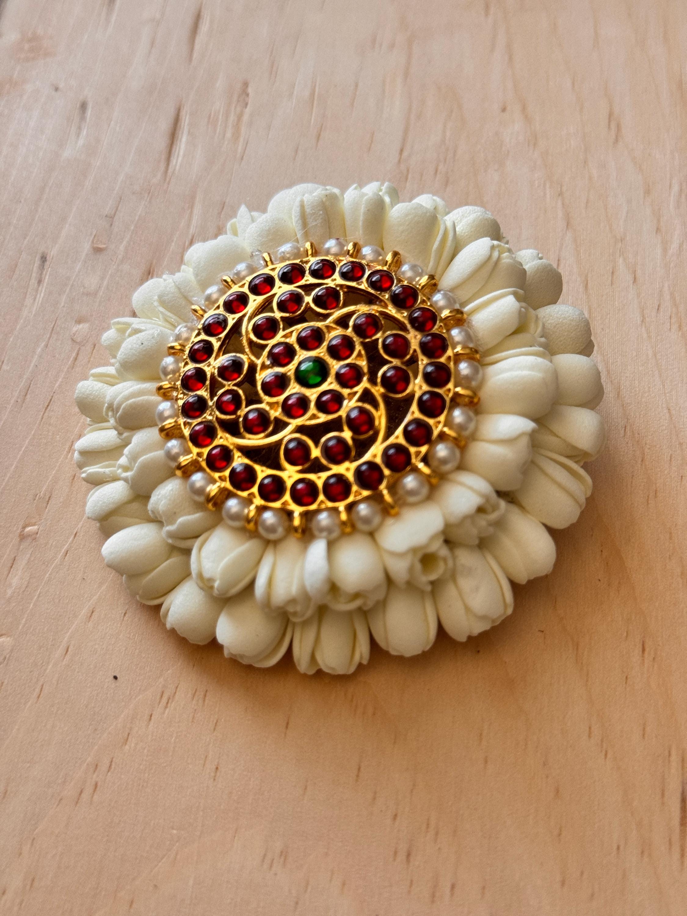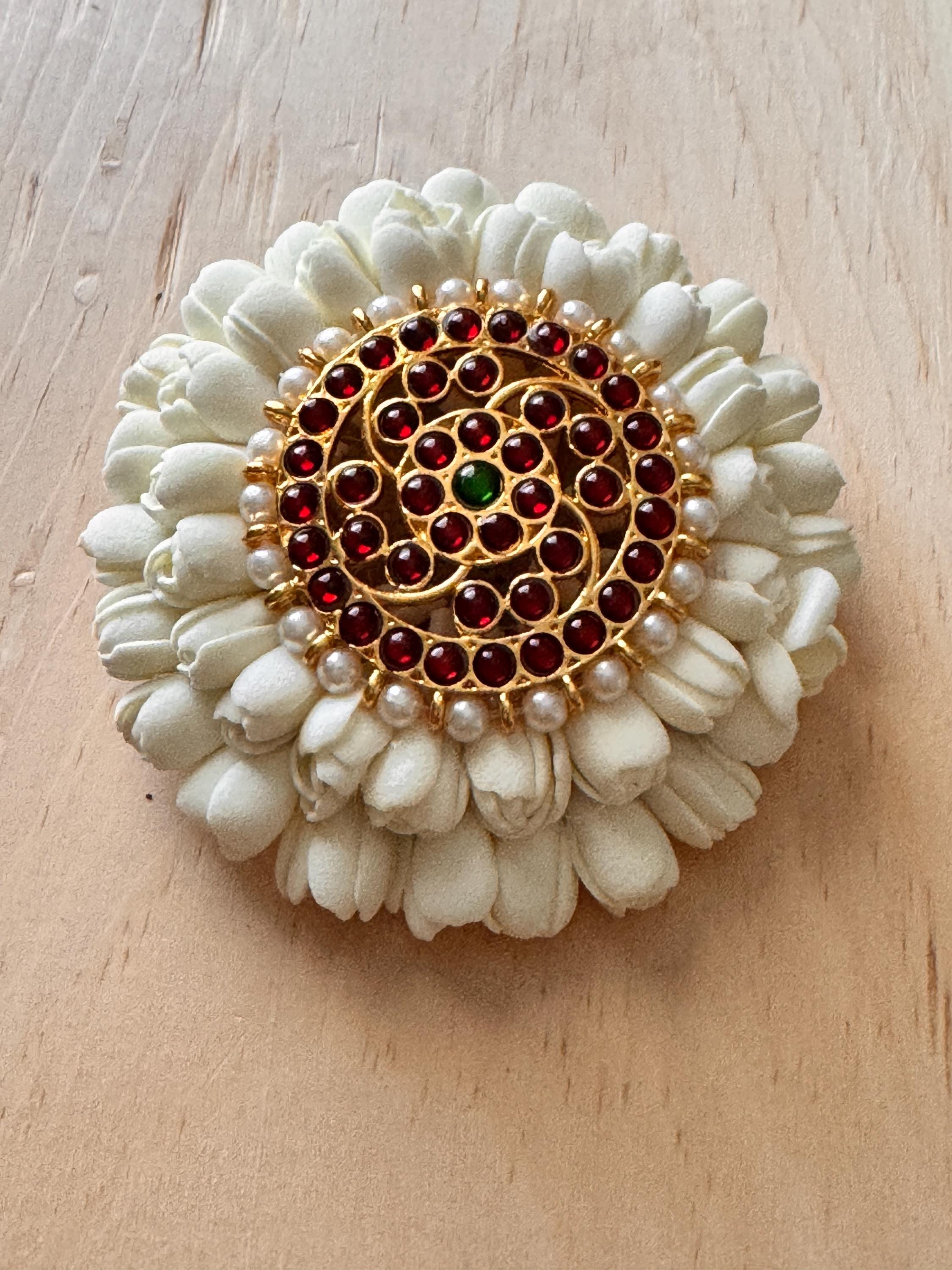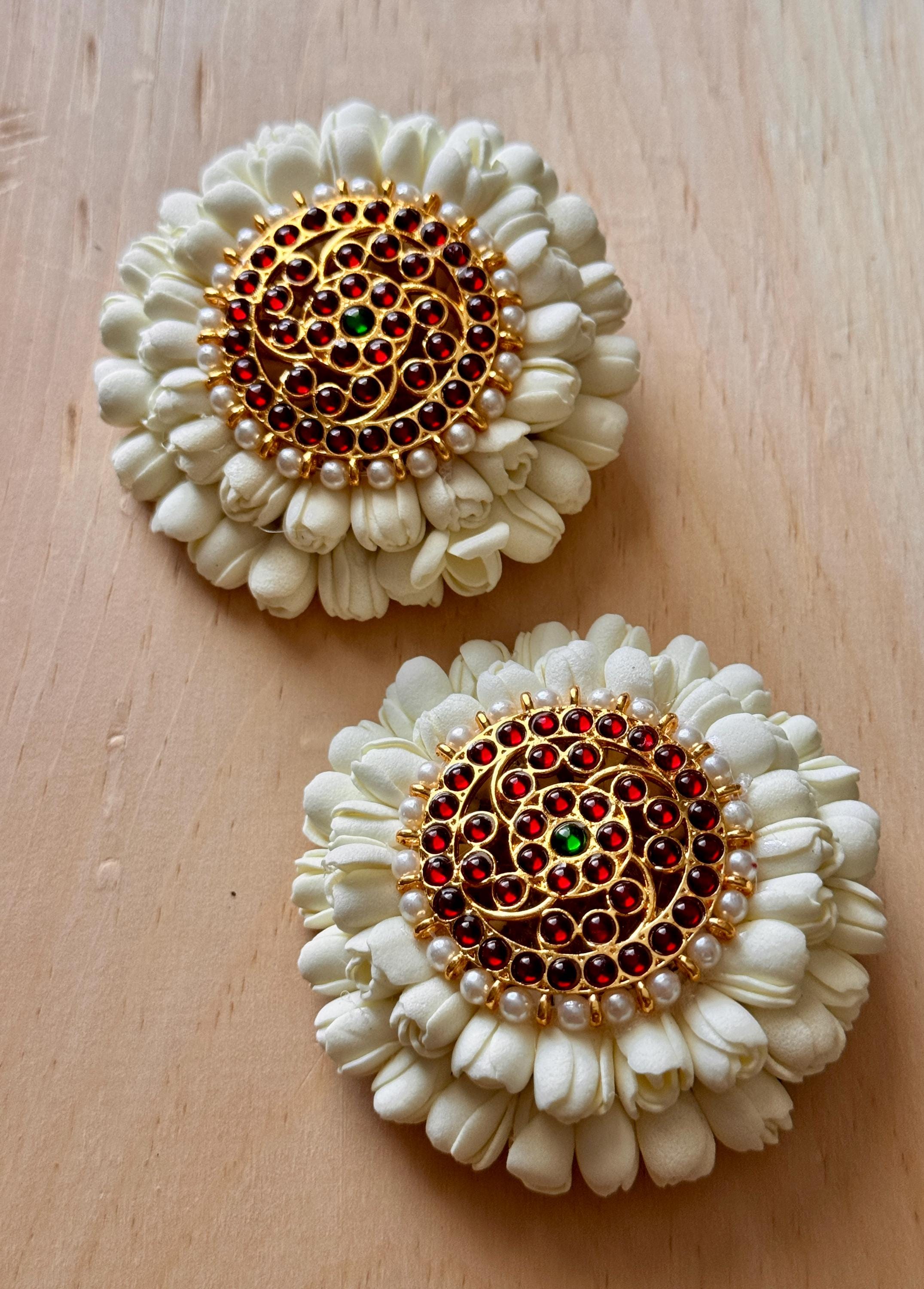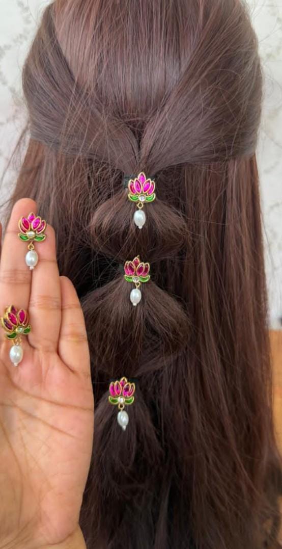 Featuring our latest/new collection of Kundan/ kemp stone (red/green) hair accessories. These are designed with the inspiration from "Raakudi" used traditionally to accessorize braids.