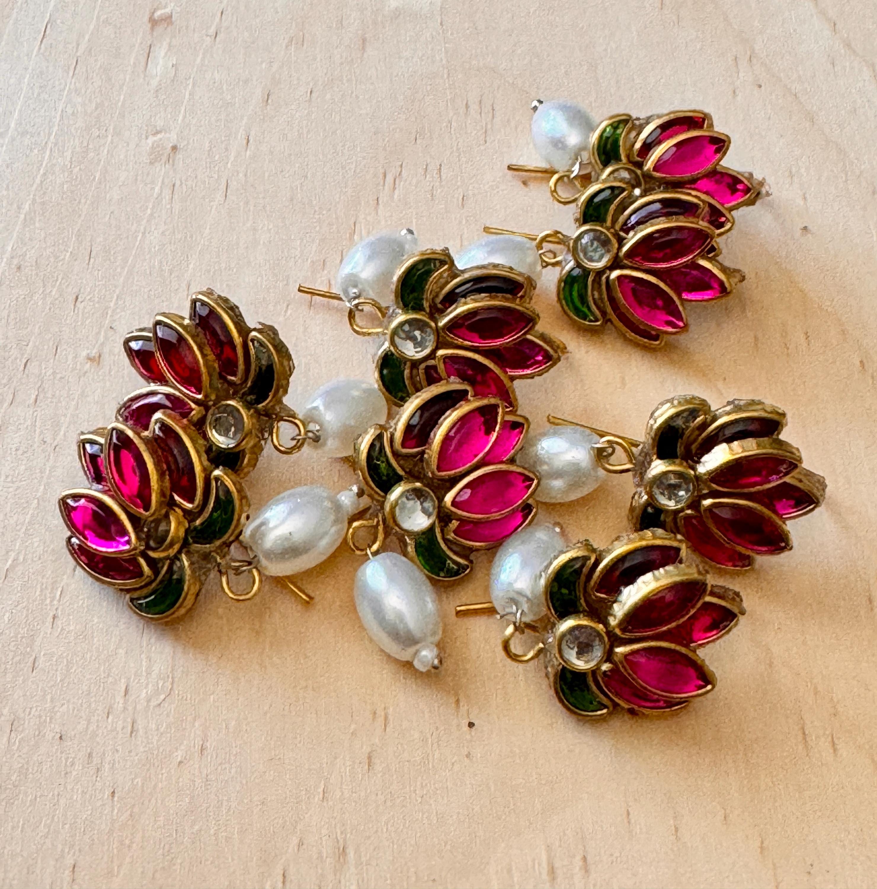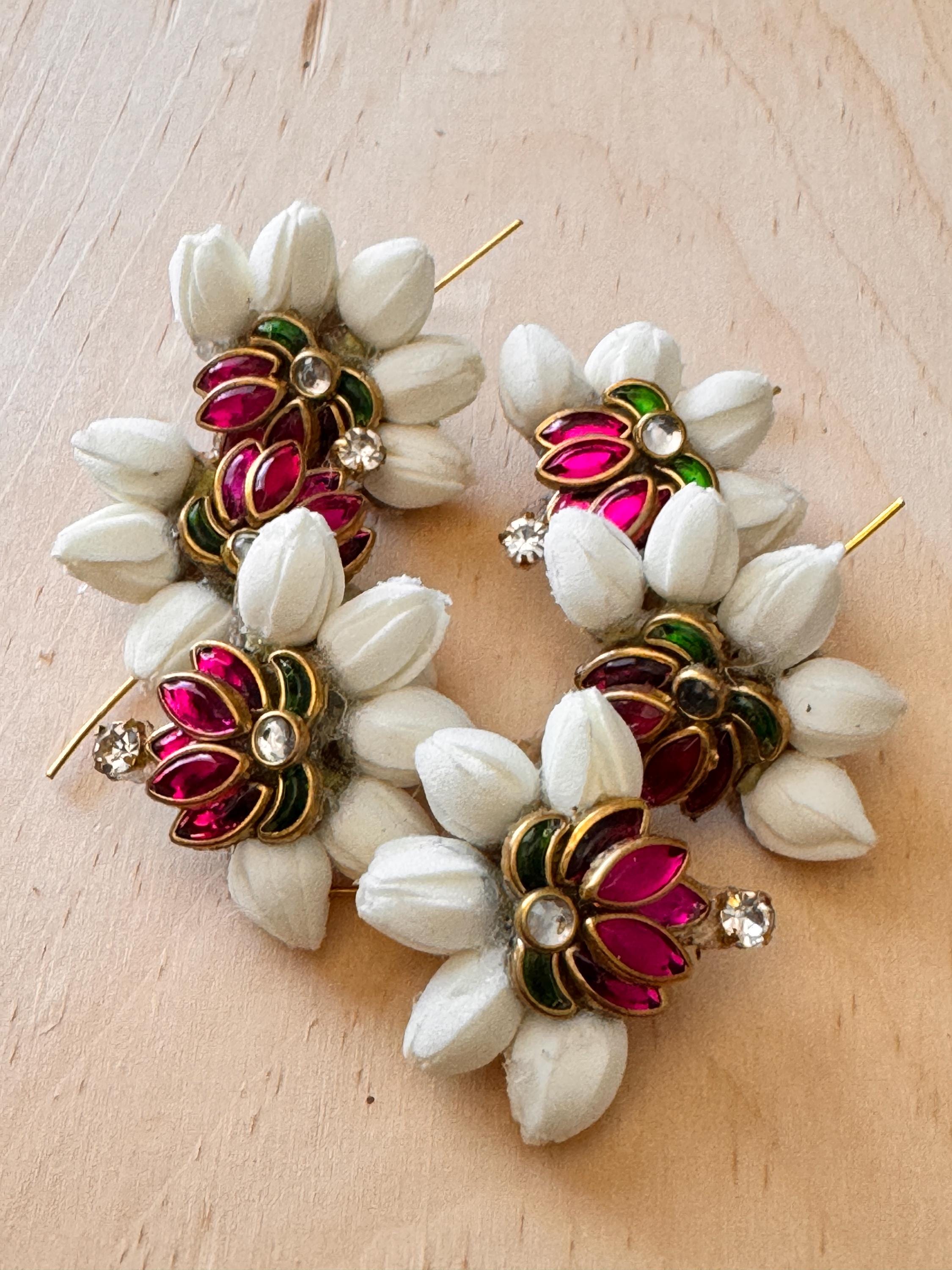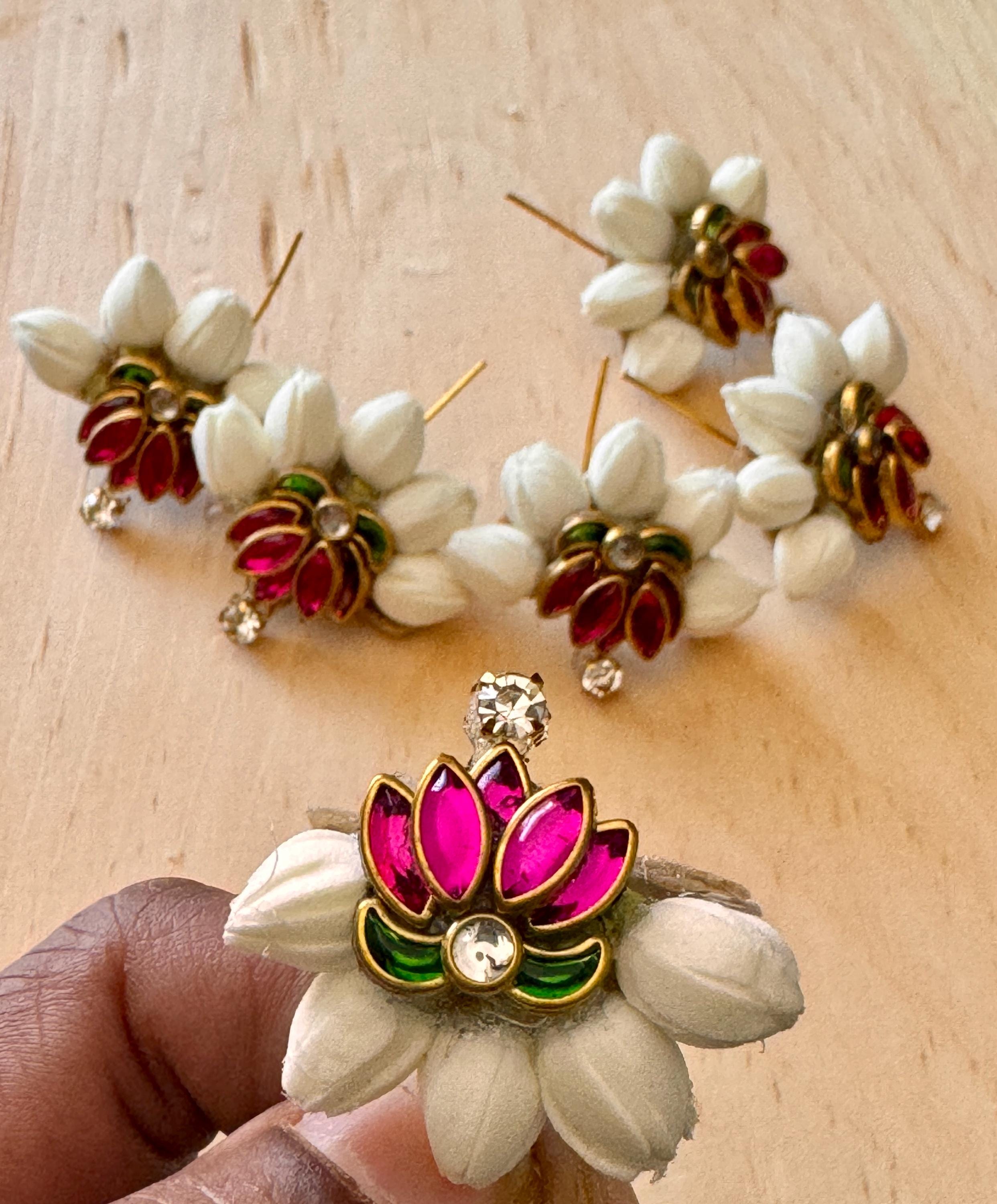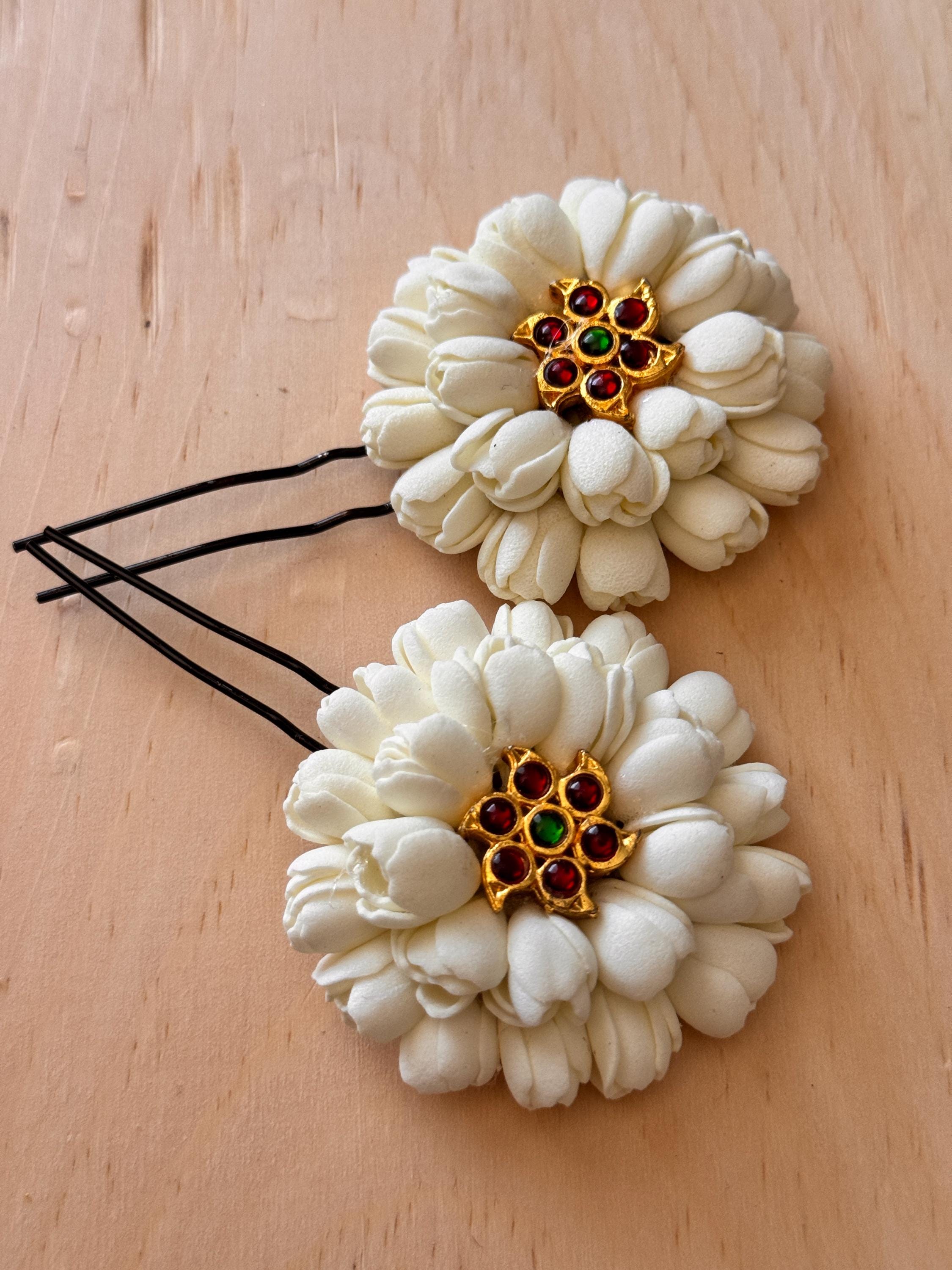 Featuring our latest/new collection of Kundan/ kemp stone (red/green) hair accessories. These are designed with the inspiration from "Raakudi" used traditionally to accessorize braids.